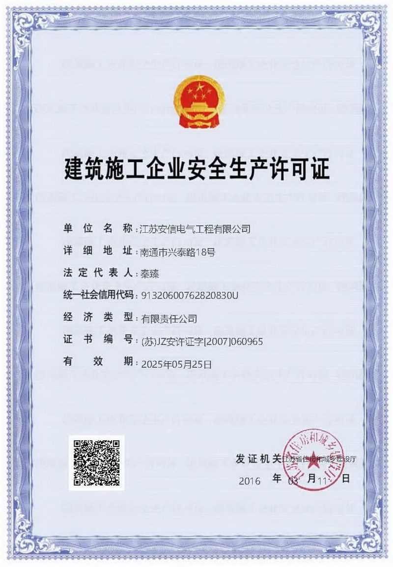承裝二級、承修二級、承試二級,電力工程施工總承包二級,輸變電工程專業(yè)承包二級,建筑工程施工總承包二級,建筑機電安裝專業(yè)承包二級,地基基礎(chǔ)專業(yè)承包二級